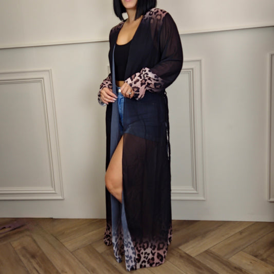 ALORA - Ombre Leopard Print Cover Up Blaxk