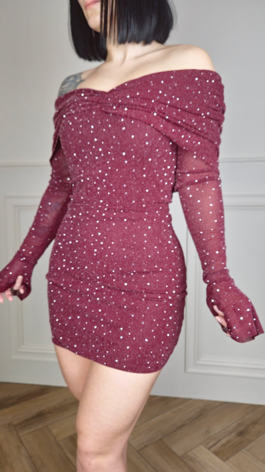 SCARLETT - Lurex Embellished Bardot Mini Dress