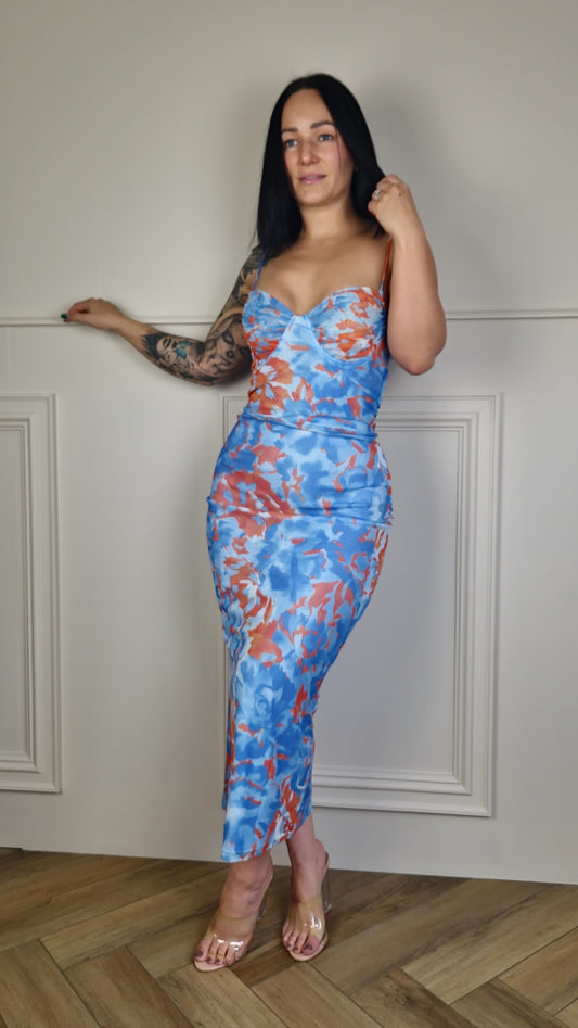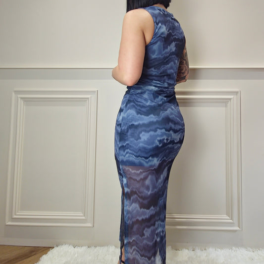 ROSIE - Ruched Tie Dye Print Side Slit Maxi Dress