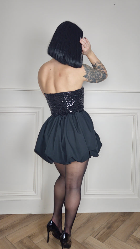 NOVA - Sequin Puff Ball Mini Dress Gold