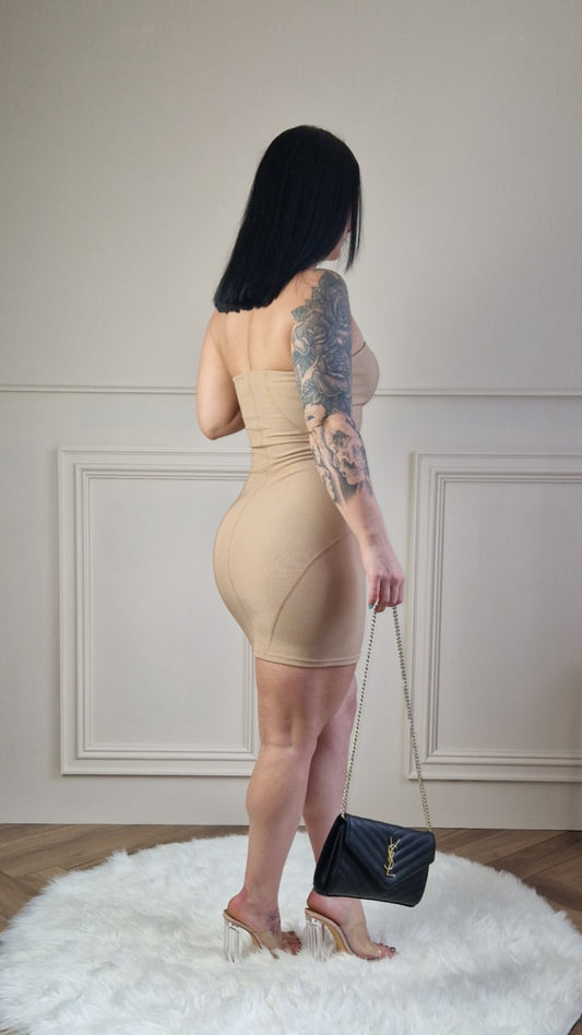 LYDIA - Nude Panel Long Sleeve Bodycon Dress