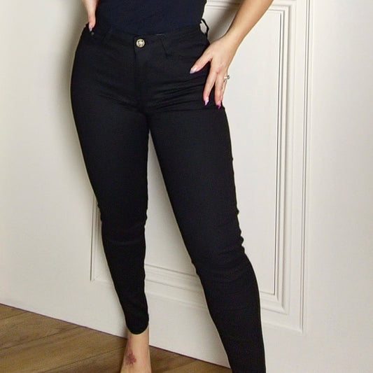 FRAN - Skinny Stretch Mid High Waist Black Jeans