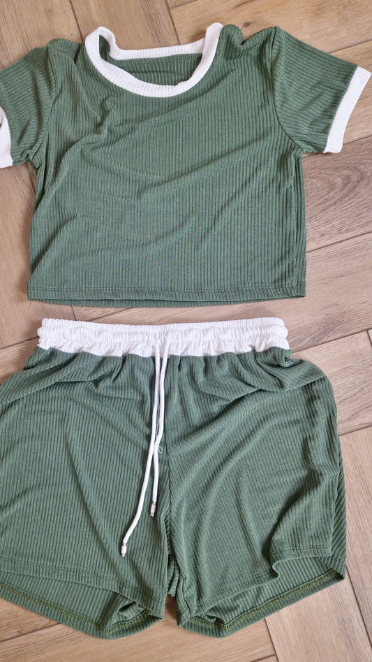 CODY - Contrast Ribbed Top & Short Set Khaki