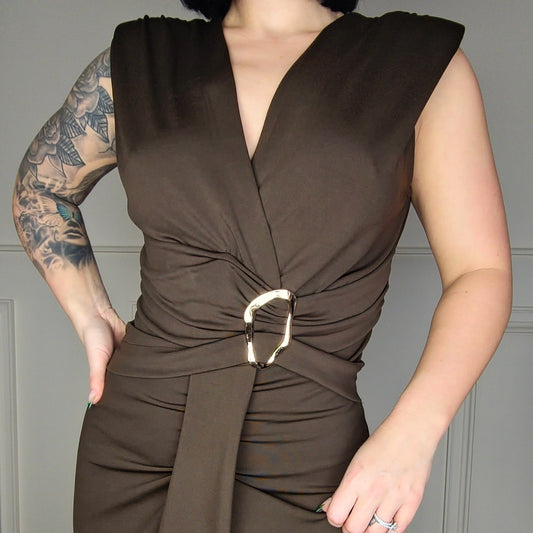 MARIELLE - Sleeveless V Neck Gold Ring Maxi Dress