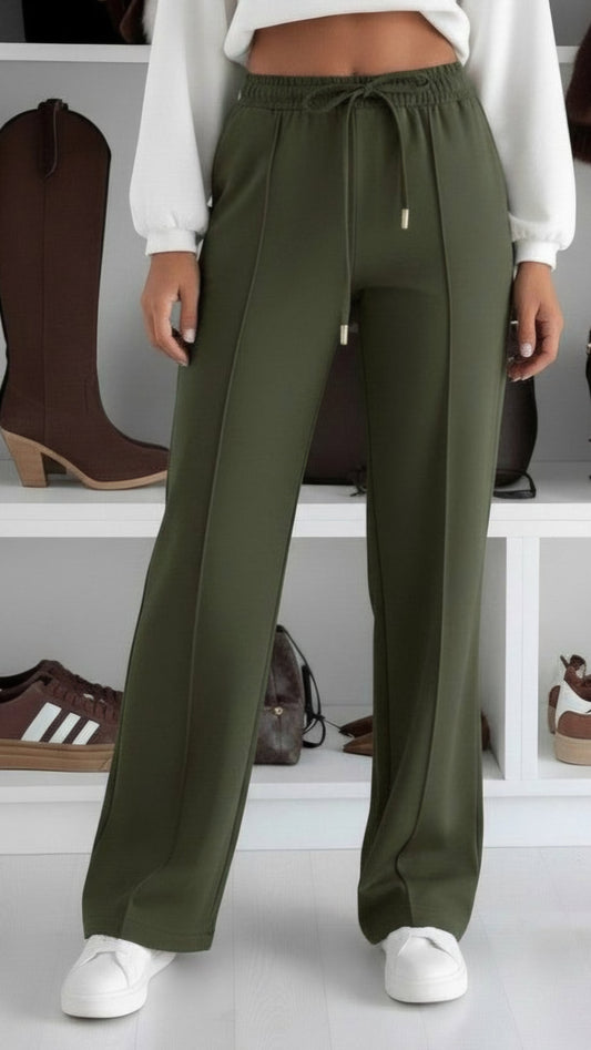 SARAH - Super Soft Elasticated Waist Straight Leg Joggers Khaki