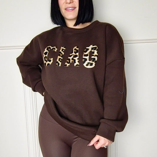 CIAO - Leopard Print Slogan Relaxed Fit Fleece Lined Sweatshirt