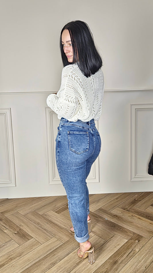 ARLINA - Crochet Knitted Cardigan Ivory