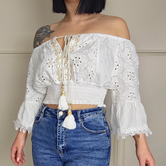CYNTHIA - Embroiderey Anglaise Gypsy Crop Top