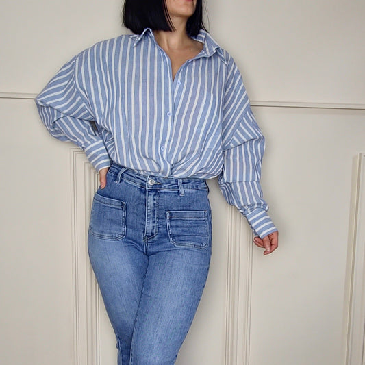 ELISHA - Striped Open Back Shirt Blue