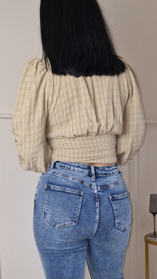 KAYLEE - Raw Hem Long Sleeve Top Khaki