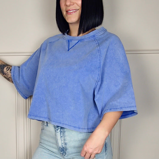 CHARLOTTE - Acid Wash Boxy T-Shirt Blue