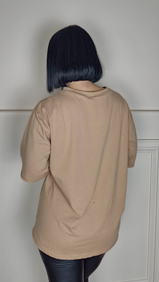 JAYE - Camel Cotton Leopard Pocket Detail Tee