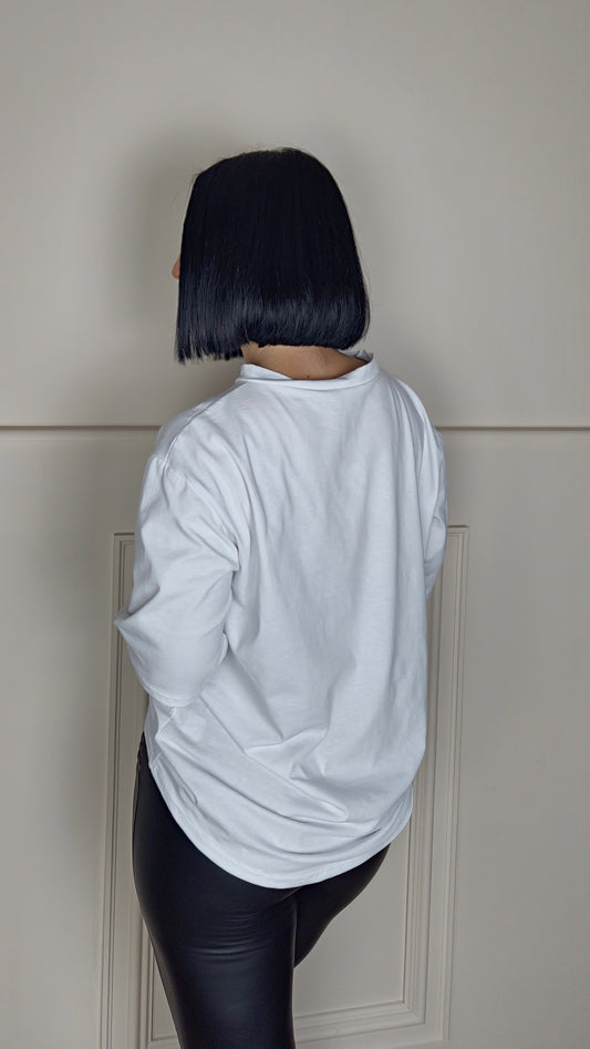 JAYE - White Cotton Leopard Pocket Detail Tee