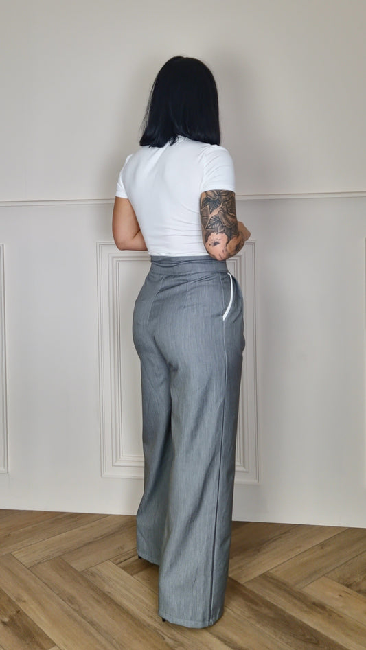 ZARINA - Wide Leg Pocket Detail Trousers Light Blue