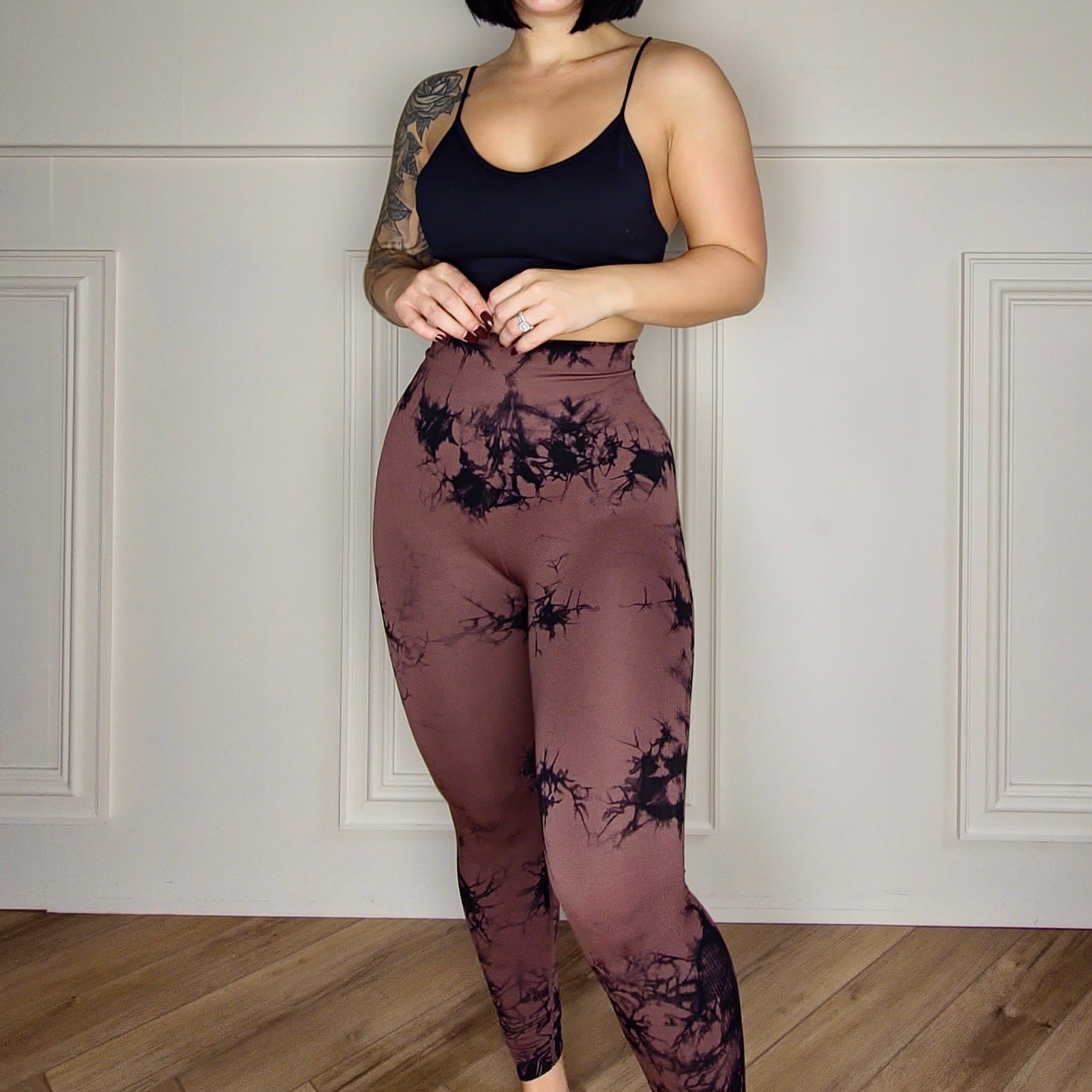 Experience comfort and confidence with JADE High Waisted Sculpting Scrunch Bum Leggings. The high waist design creates a flattering silhouette while the sculpting fabric smooths and shapes. The unique tie dye pattern adds a trendy touch to these must-have workout leggings.