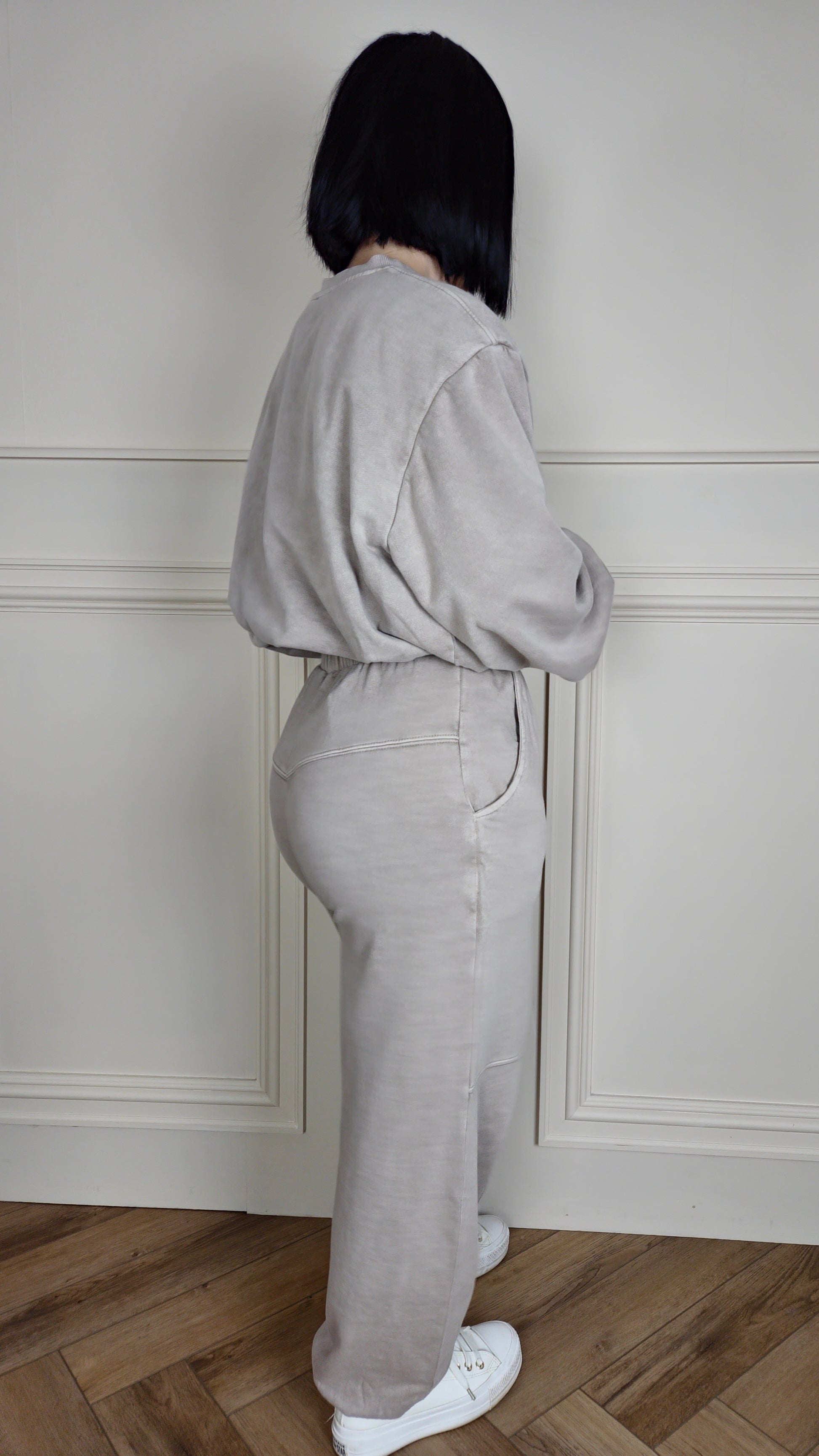 LEAH - Acid Wash Bubble Hem Tracksuit Dove Grey