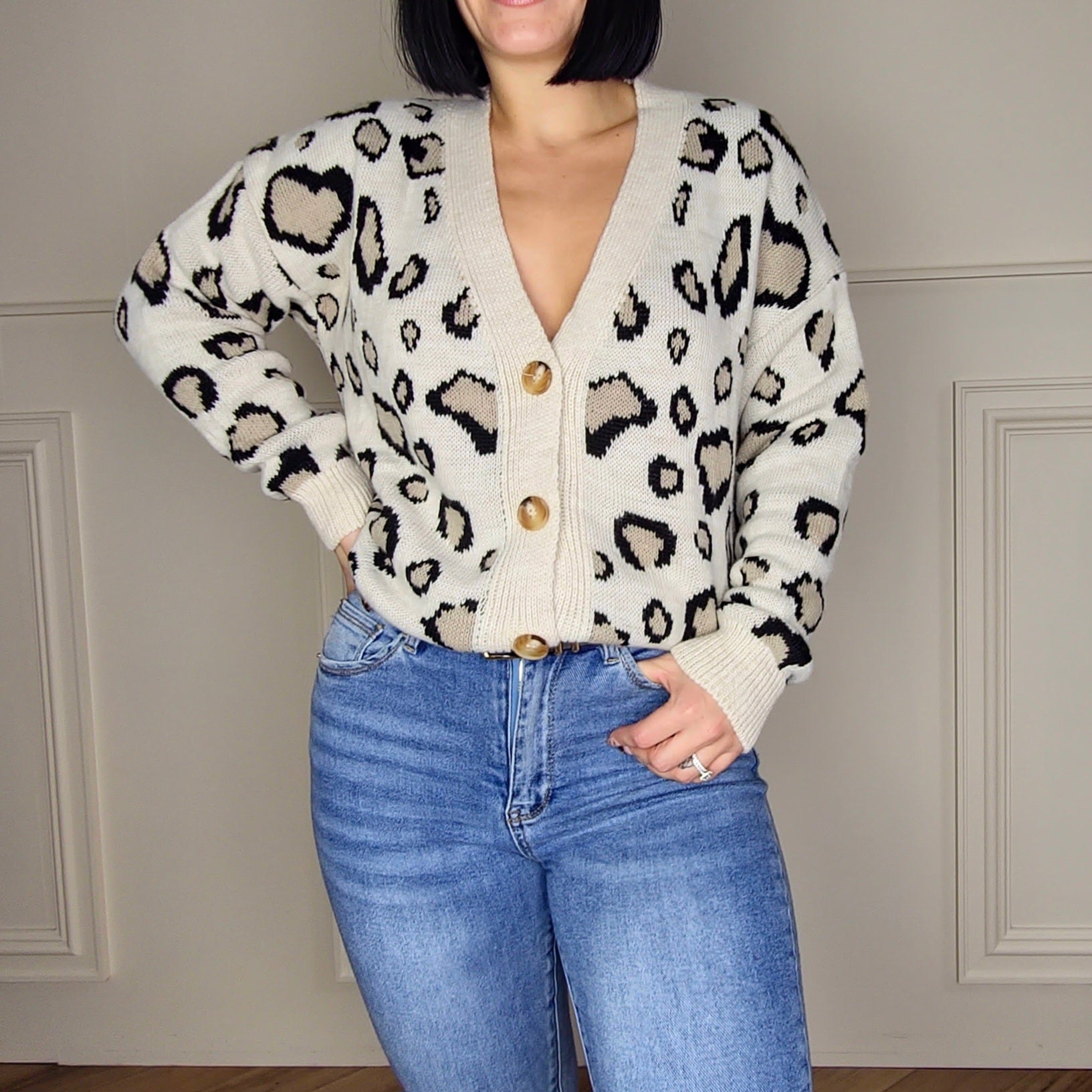 Get ready for the colder months in style with the Lynda Leopard Print Knitted Cardigan. 🖤🐆
