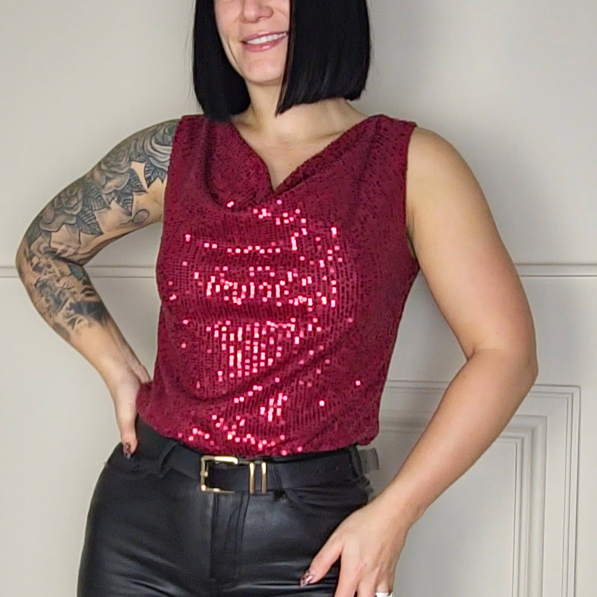 ✨ Orla Sequin Cowl Sleeveless Top Blouse ✨